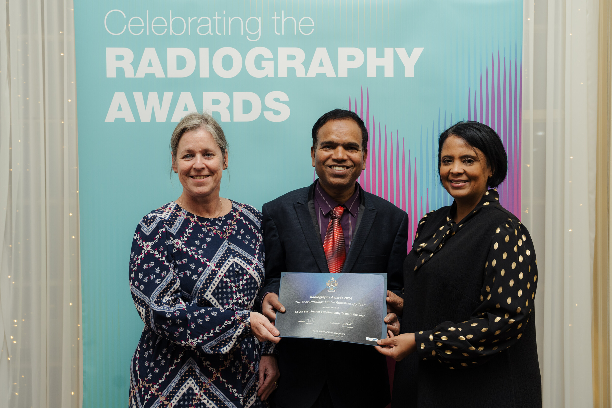 I started working as a therapy radiographer in 2017, and immediately took an interest in the surface guided radiotherapy (SGRT) system and the image guidance. Since then I have undertaken a MSc in Advanced Clinical Practice in Radiotherapy and Oncology. My primary role in my department is Image Guided Radiotherapy (IGRT) specialist, and as part of that role I manage the imaging and surface guided needs of complex patients. Most recently I have led the implementation of head and neck SGRT with open masks, which I hope is making the treatment more comfortable for our head and neck patients and I have demonstrated is just as accurate as the old less comfortable masks. I now also work in the East Midlands Radiotherapy Network as a SABR and Motion Management Radiographer, which has led me to work with all five Radiotherapy departments in the East Midlands to pool our resources and optimise SABR pathways while enhancing the motion management offerings. I am absolutely delighted to be the recipient of this award but also want to acknowledge that none of the things I have contributed to would be possible without the dedication of the Lincoln Radiotherapy Team, they are a credit to the profession.