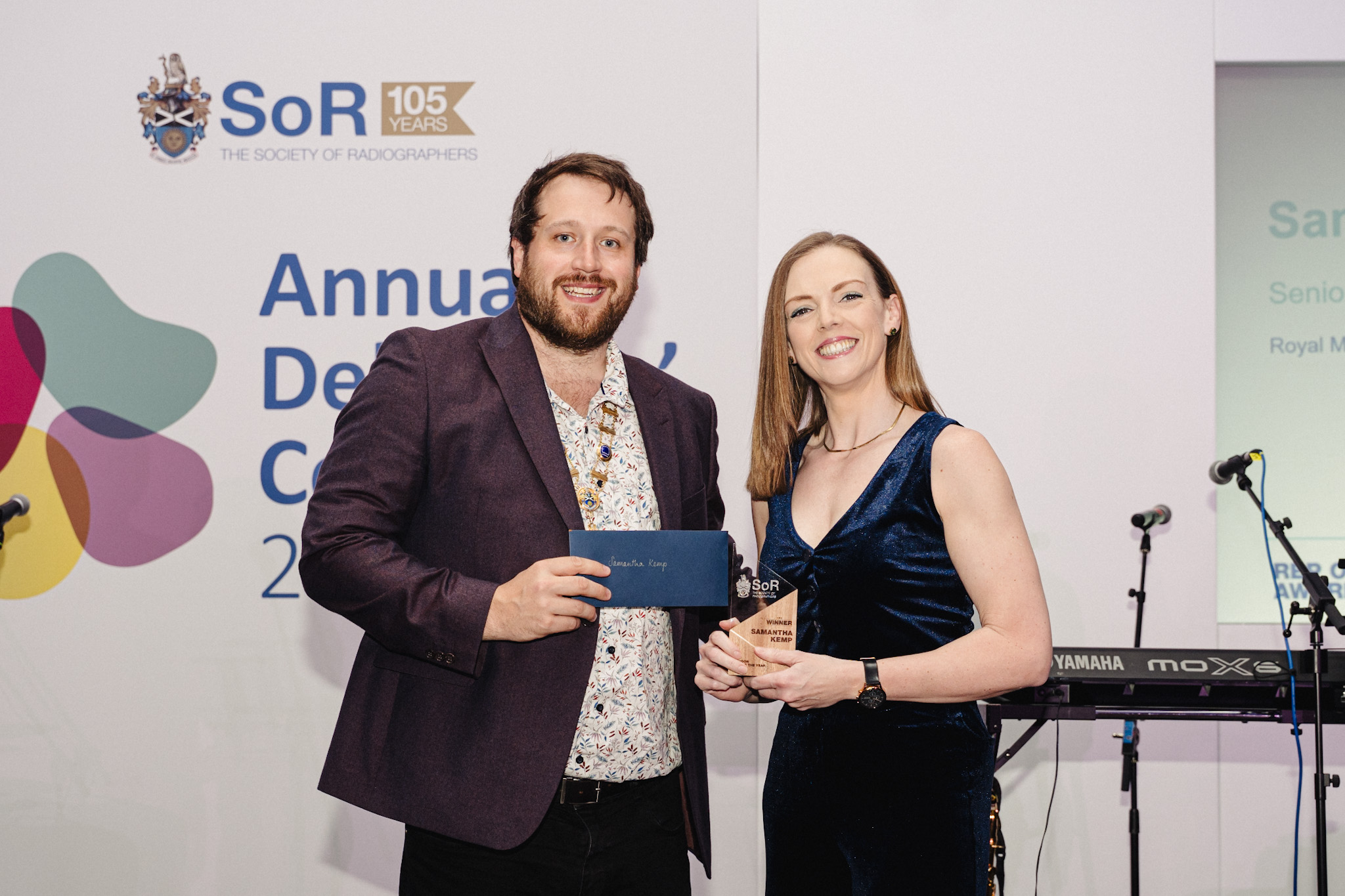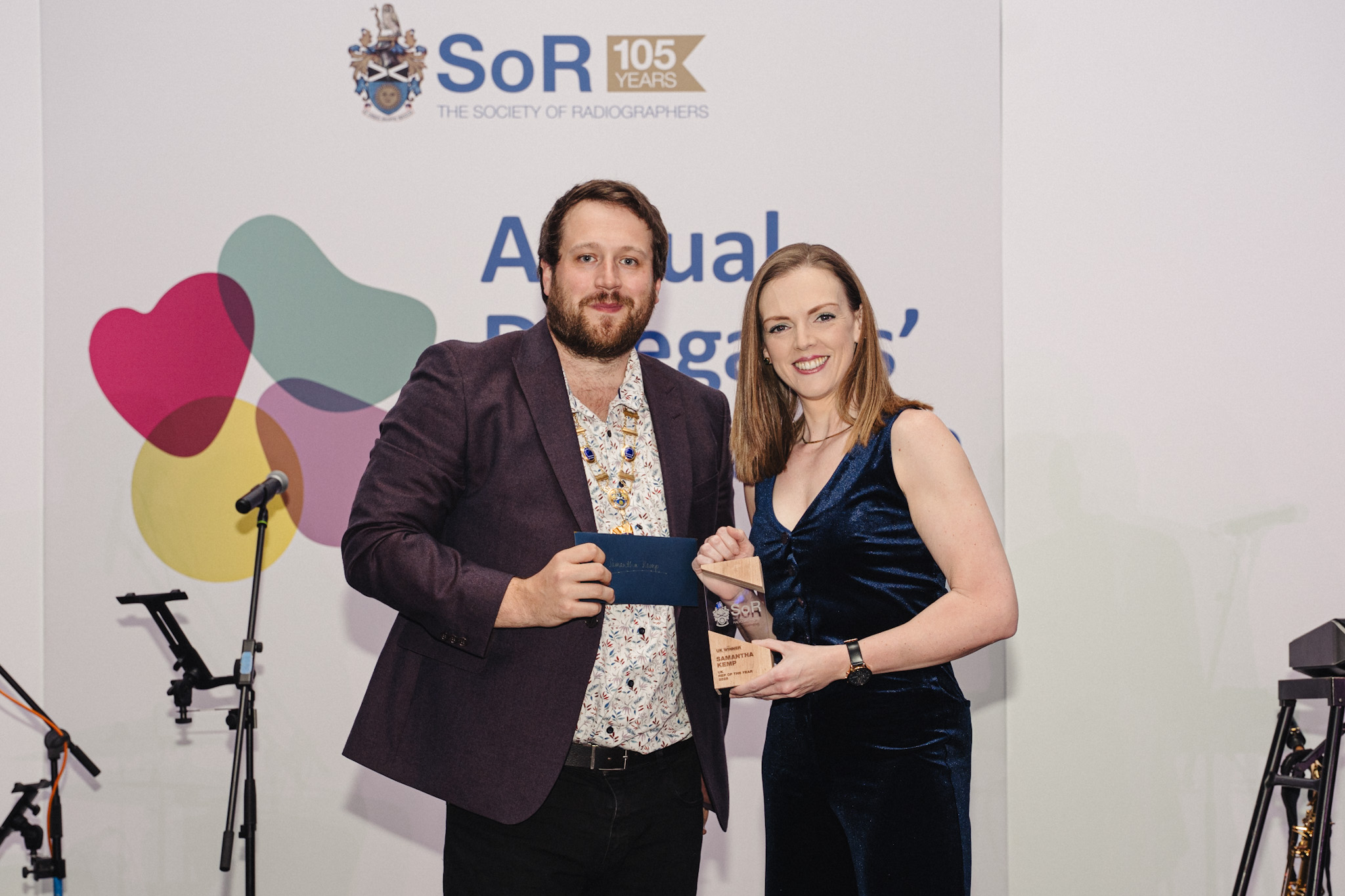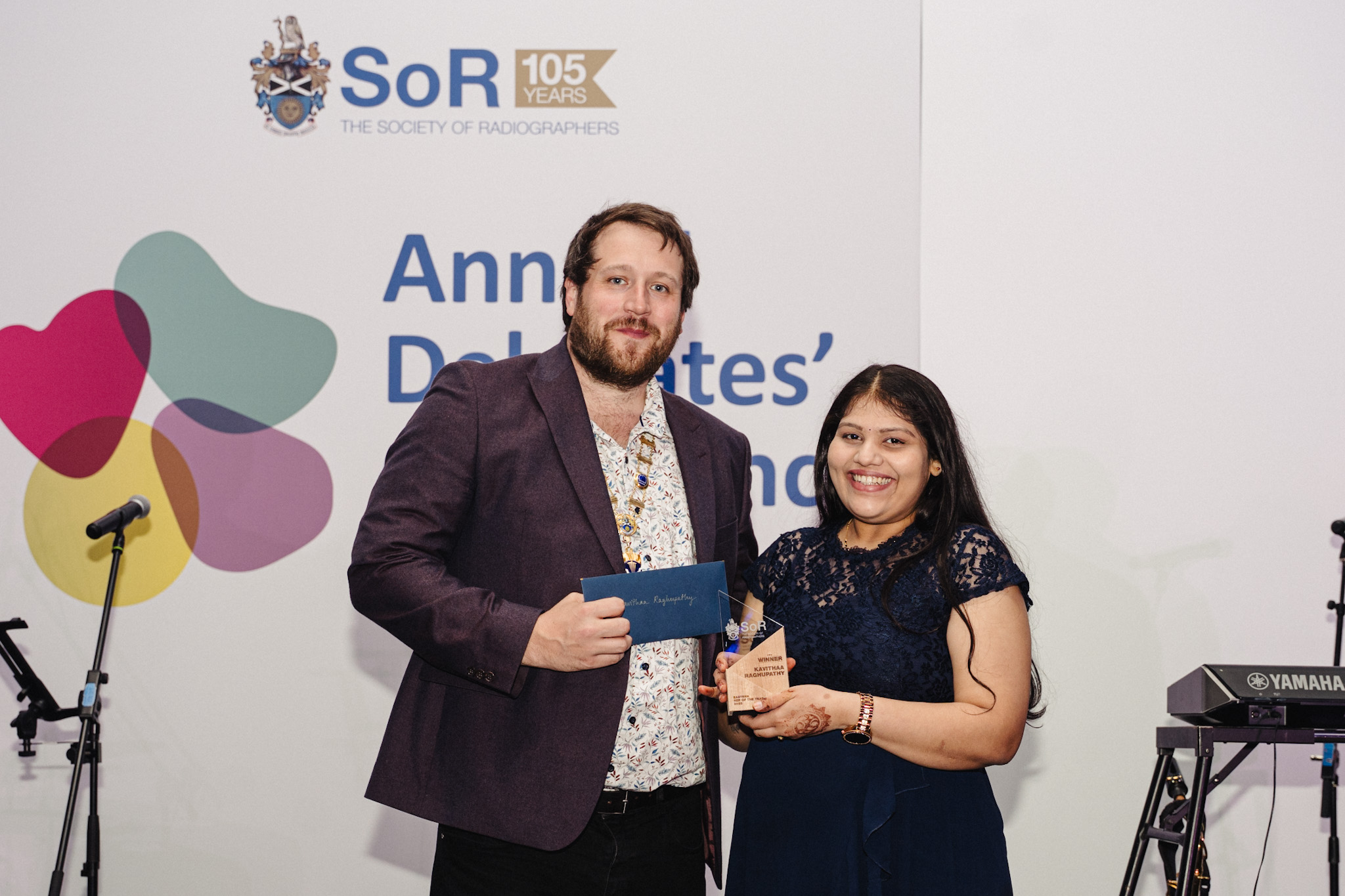Photo caption: Tom Welton, SoR President and Frankie Martyn (colleague) accepting award on behalf of Jasmine Edmunds.