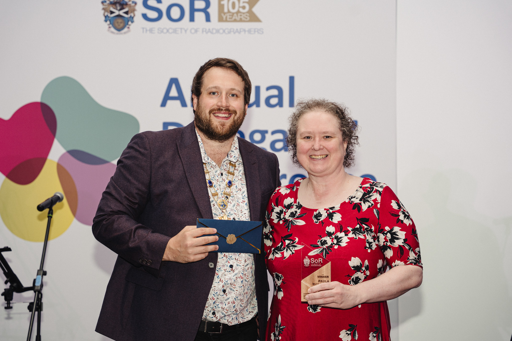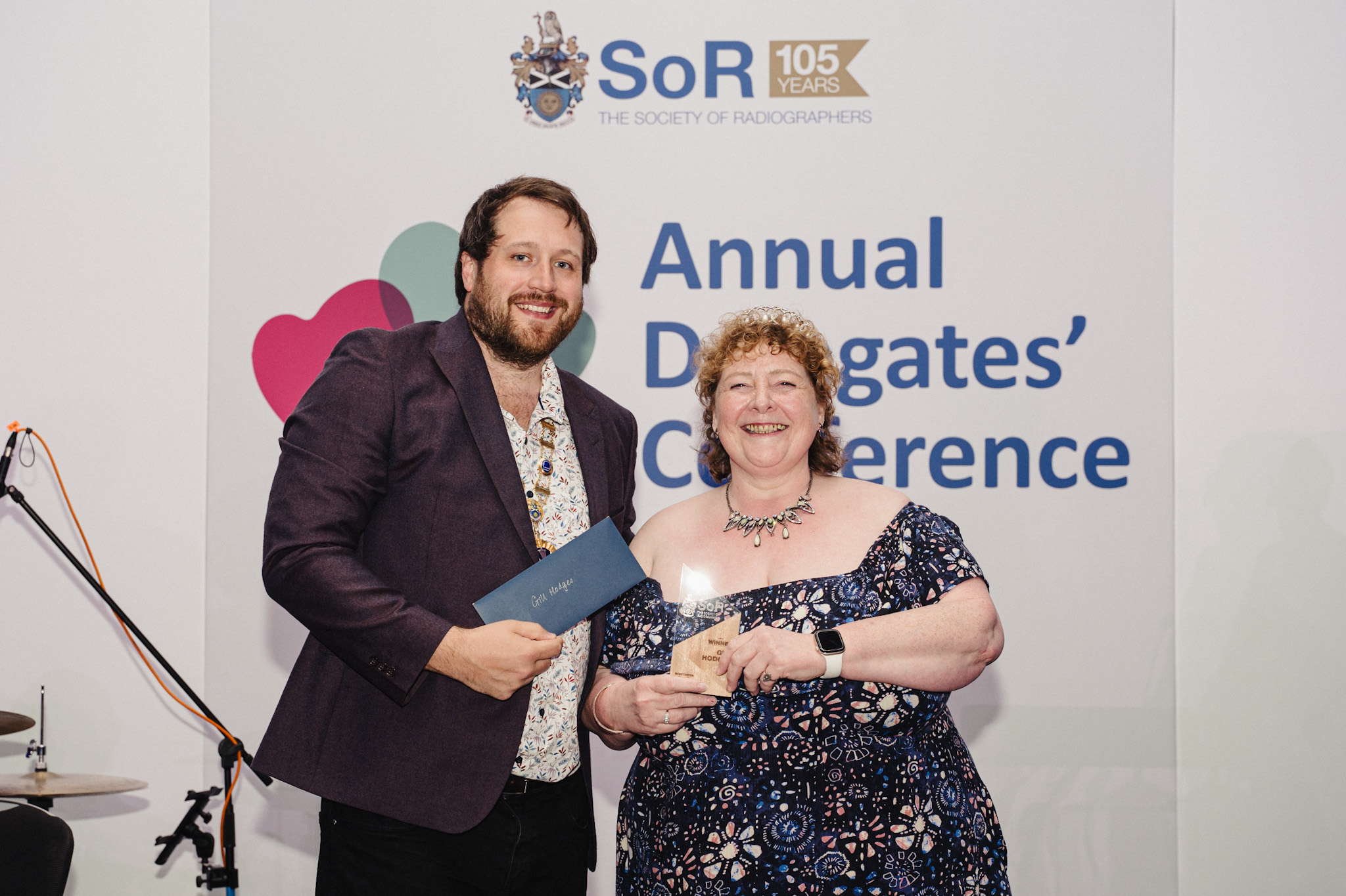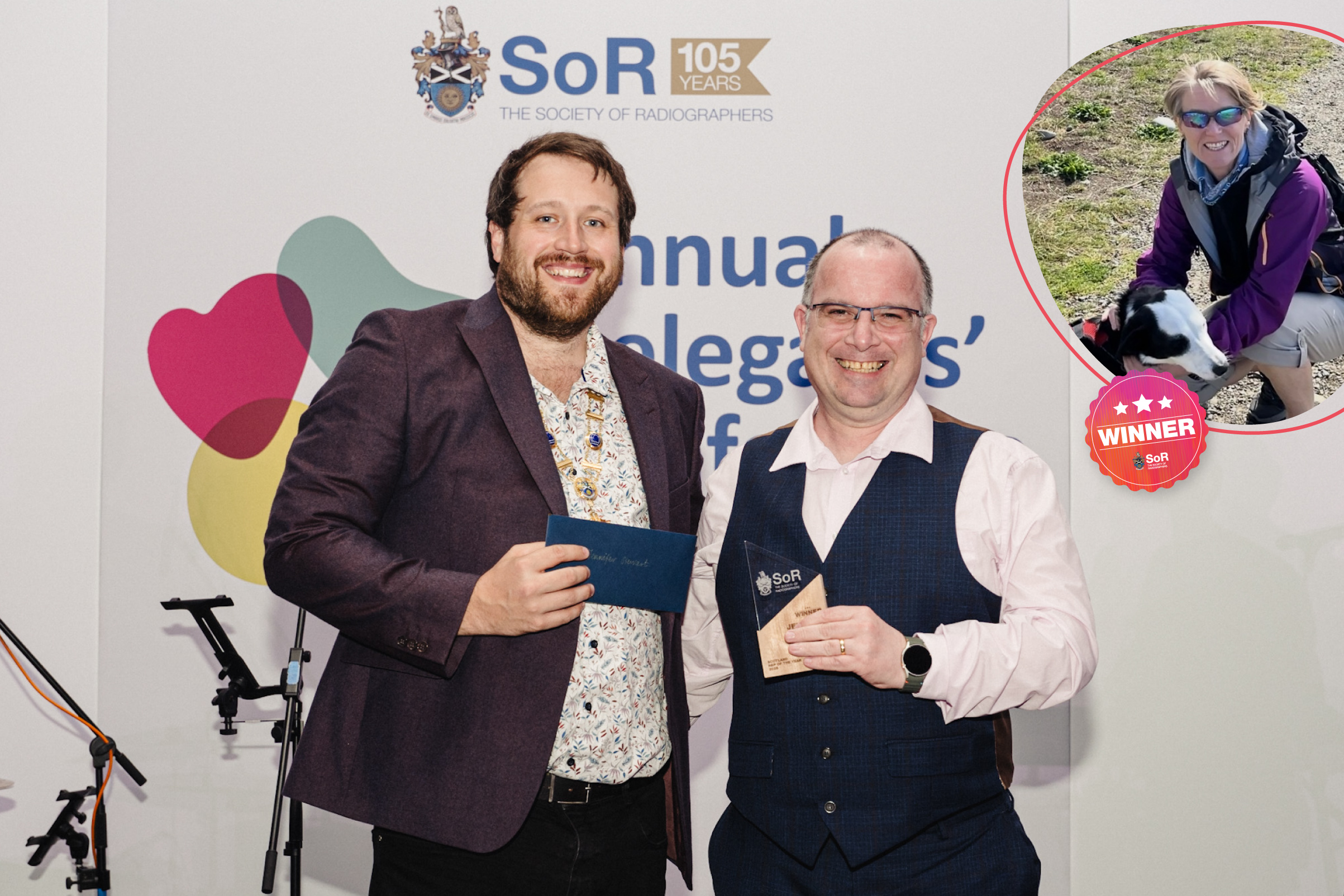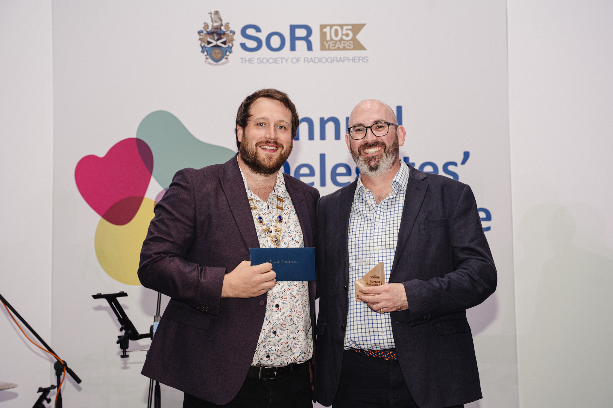 Photo caption: Tom Welton, SoR President and Gareth Haining (Delegate Lead for Scotland) accepting award on behalf of Jennifer Stewart.