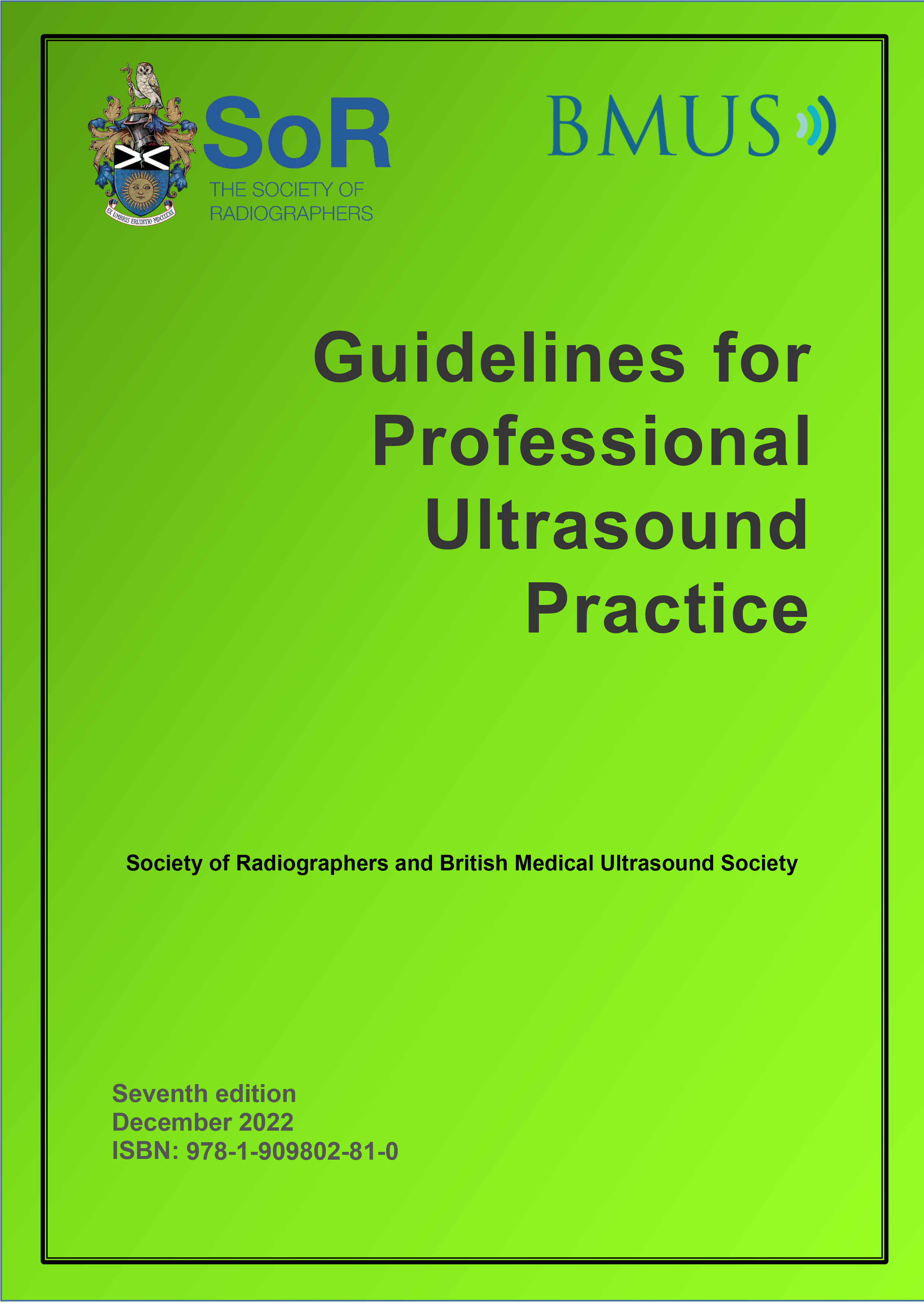 SoR and BMUS (2022) “Guidelines for Professional Ultrasound Practice” 7th ed., Society of Radiographers and British Medical Ultrasound Society. ISBN: 978-1-909802-81-0