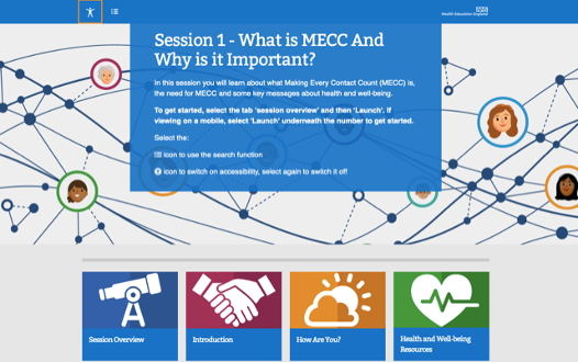 The Long Term Conditions and Prevention programme team in Health Education England have worked with Health Education England elearning for healthcare (HEE elfh), to develop a Making Every Contact Count (MECC) toolkit. The toolkit is populated with reviewed resources and information previously hosted on the making every contact count microsite and aims to support individual learners and organisations to use MECC resources effectively.