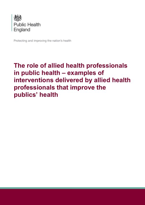 Linda Hindle - Public Health England, Laura Charlesworth - Sheffield Hallam, and University (2019). UK Allied Health Professions Public Health Strategic Framework 2019-2024.