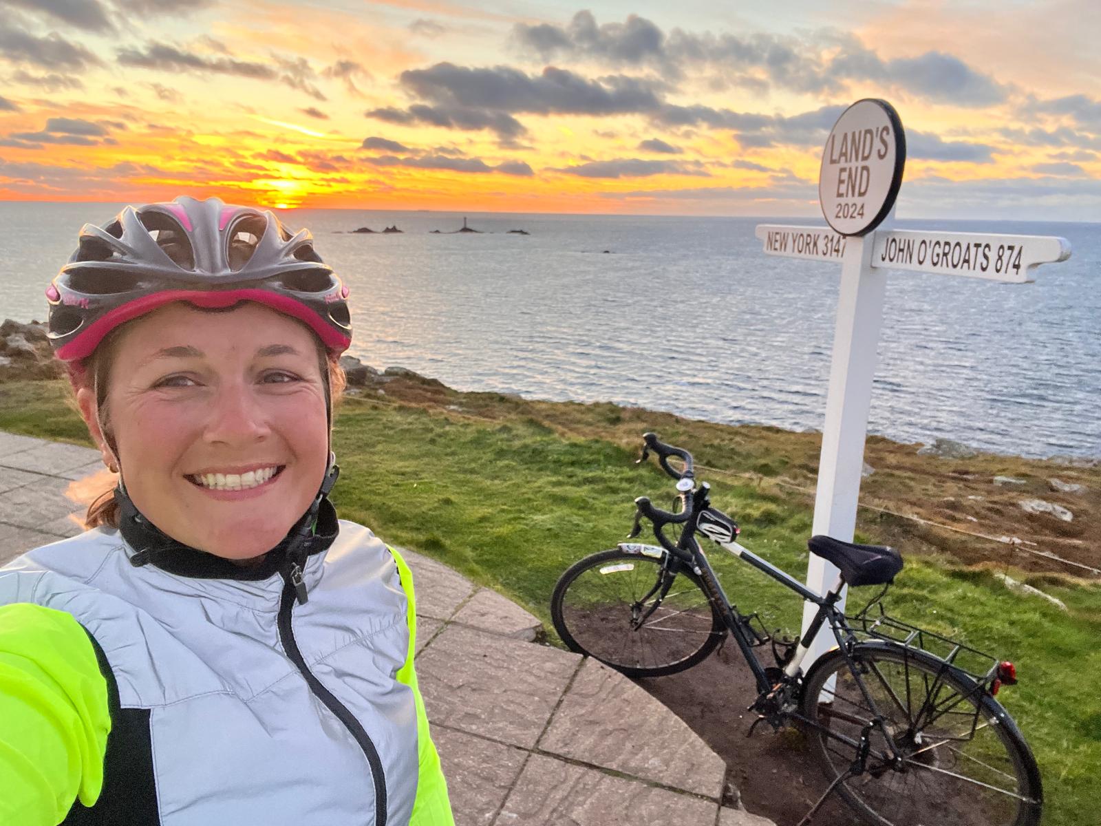 Beginning on Thursday 3 October, she cycled from John O’Groats in Scotland to Land’s End in Cornwall, an approximately 920 mile trip, over the course of 10 days, completely unsupported.