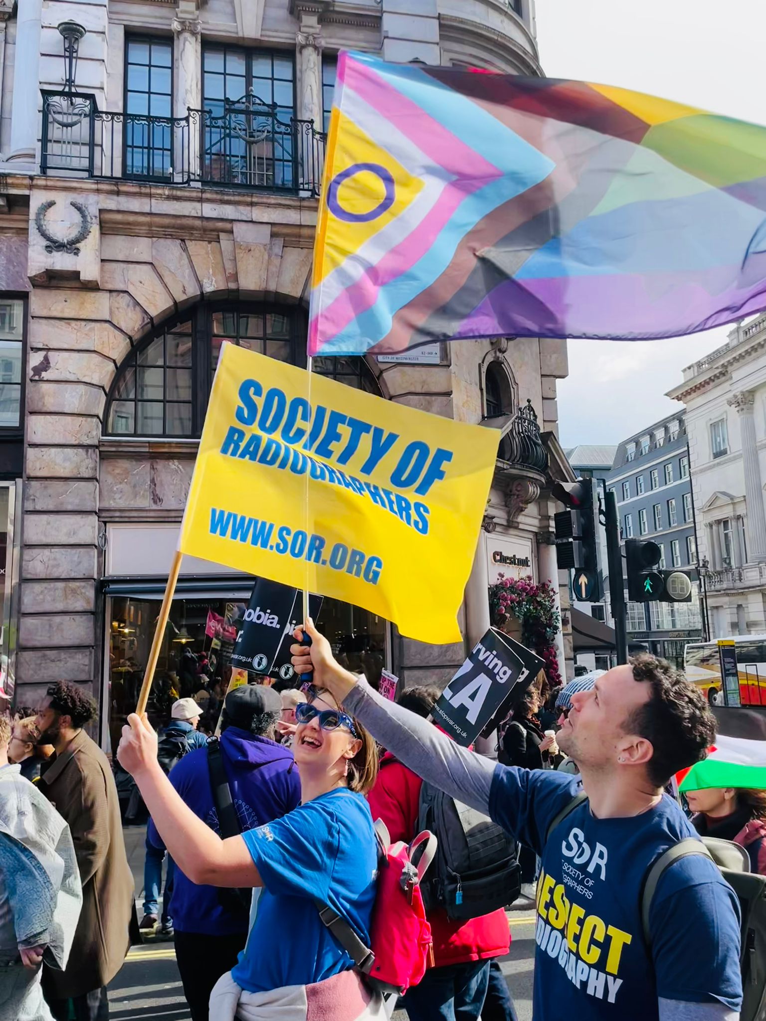 Katie Thompson, president of the SoR, said: “Flags, witty placards, vocal chants, brass and samba melodies filled the air at the Together Alliance march in London. The air was filled with determination, positivity and a huge sense of community. I was filled with a sense of belonging and enormous pride that so many had travelled to show their strength of feeling against racism, bigotry, misogyny, and exclusion.”