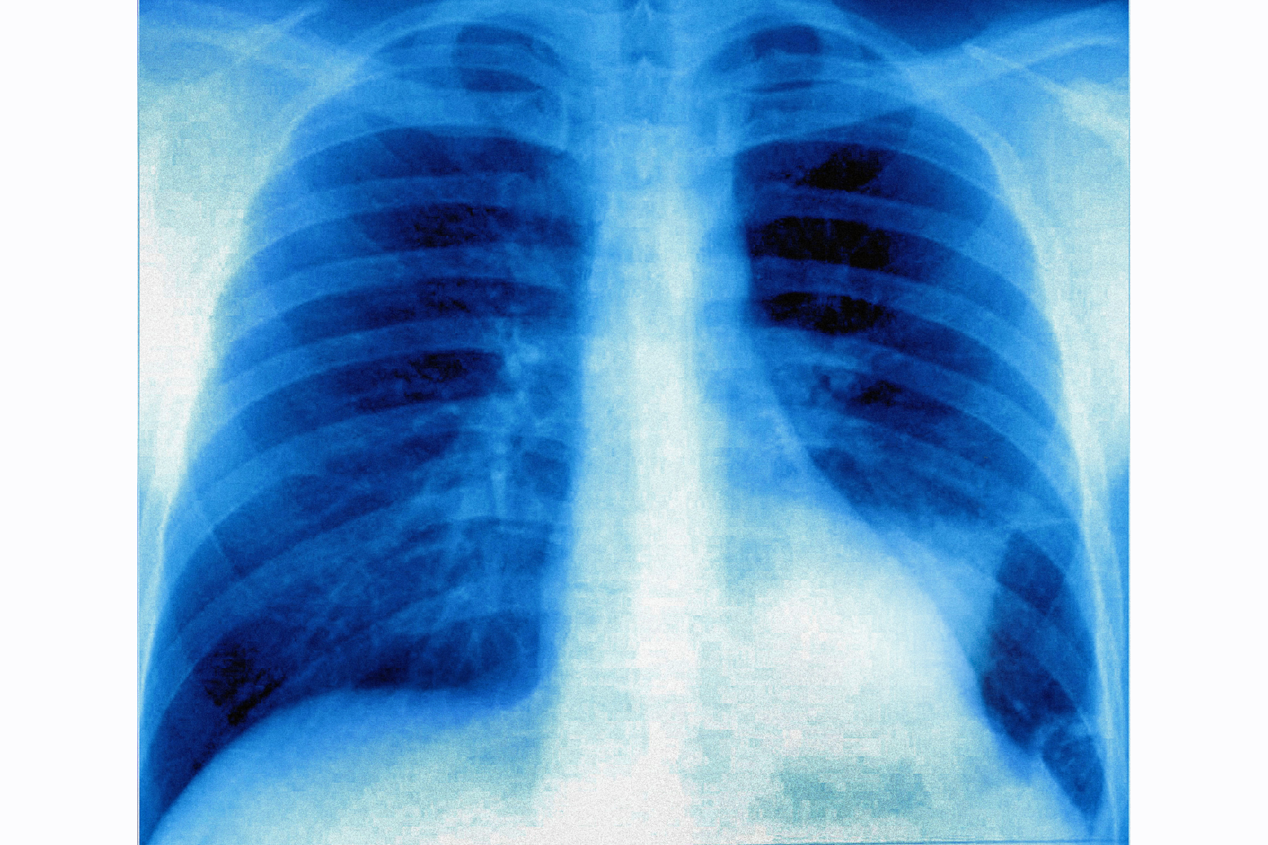 Lung cancer on the left pulmonary lobe, seen on a frontal x-ray of the chest. (Photo by: BSIP/Universal Images Group via Getty Images)