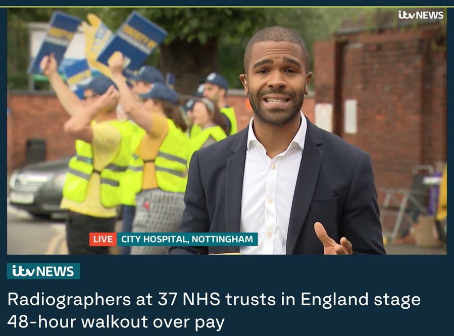 ITVX was broadcasting live from the the picket line at Nottingham's City Hospital as SoR members waved placards in the background. Watch the video here.