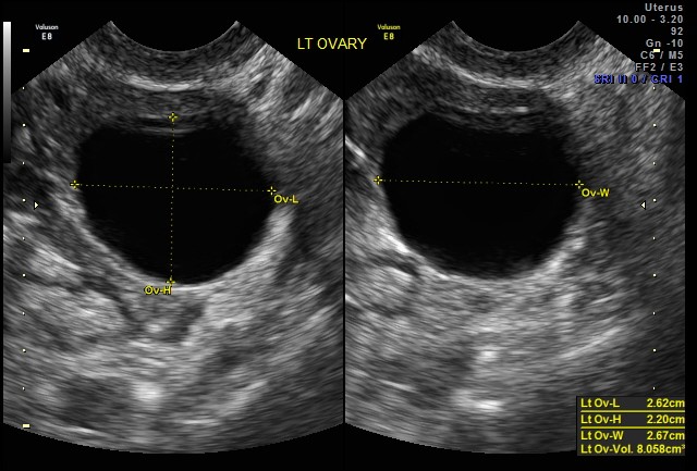 (image: Ultrasound of left ovary with follicle, via the SoR)